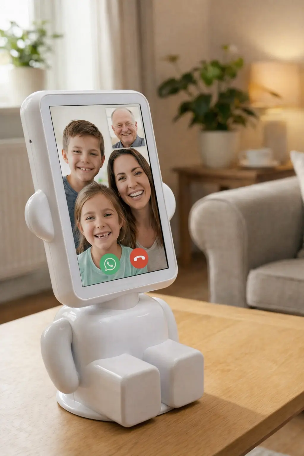 - Verbindt met familie, vrienden en zorgverleners via spraak, video of WhatsApp